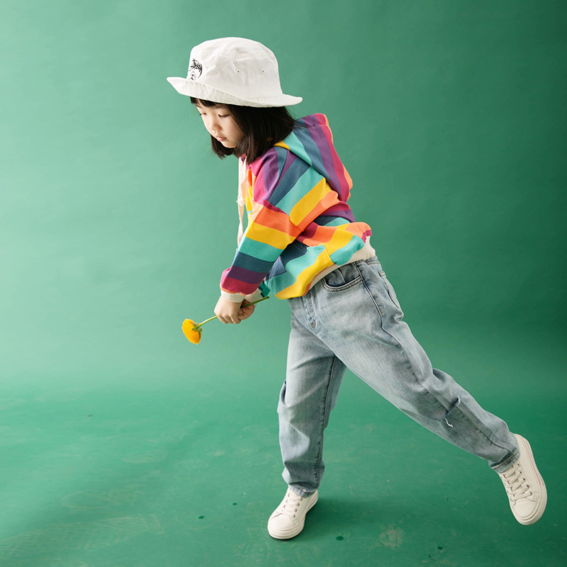 Li Xiaoxian children's clothing 2022 autumn new boys and girls Korean version of the hole washed jeans casual children's trousers