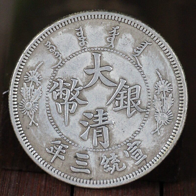 Antique silver yuan Yuan Dayang real product Longyang can be blown and broken Xuantong three-year white copper core long bearded dragon signature version