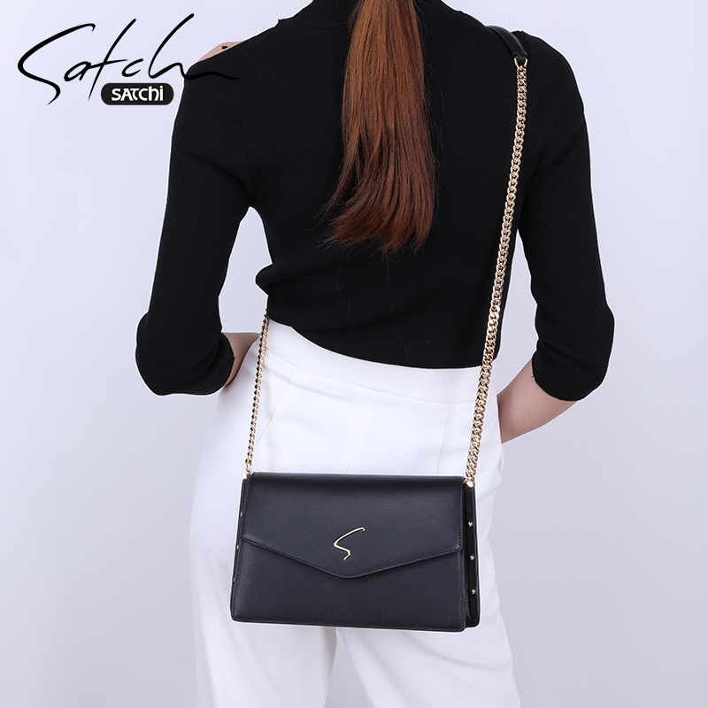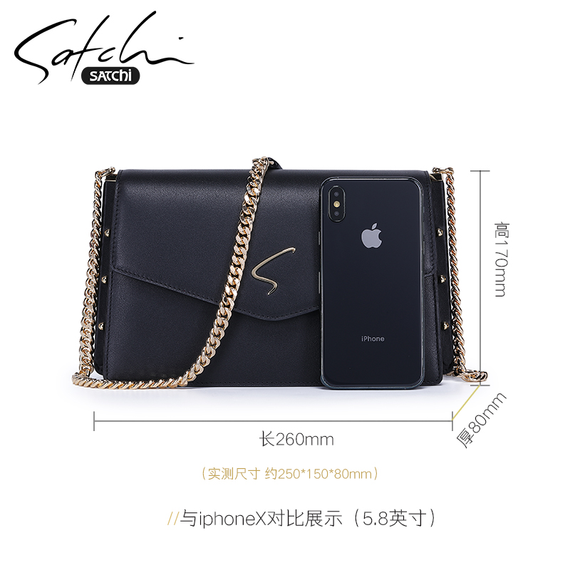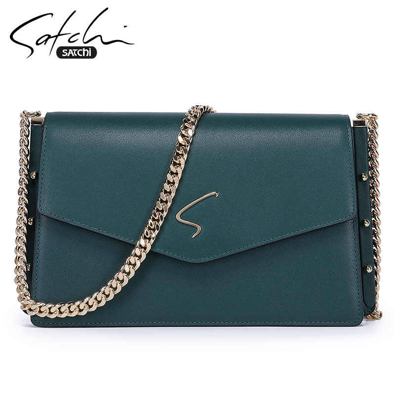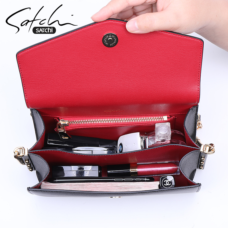 Sachchi Woman Bag New Korean Version Genuine Leather Upscale Chain Single Shoulder Bag 100 Hitch Texture Bull Leather Skew Satchel Bag