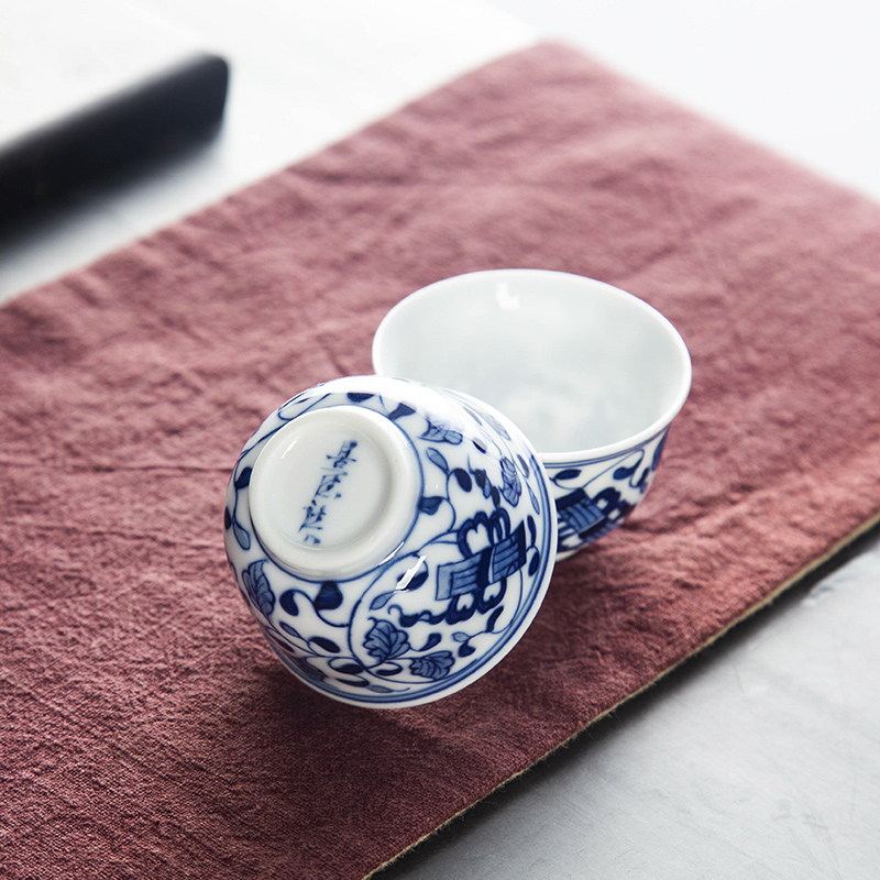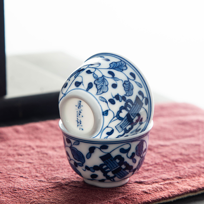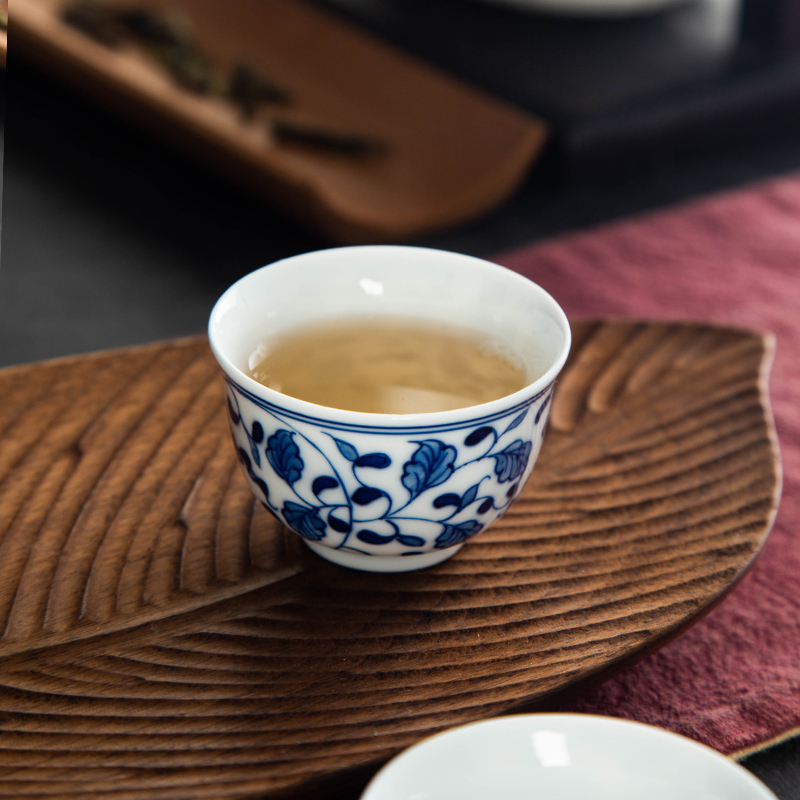 Pint Tea Cup Gongfu Tea Cup Ceramic Tea Set Green Flower Porcelain High White Glaze Small Personal Master's Cup Single Cup Handmade Painting