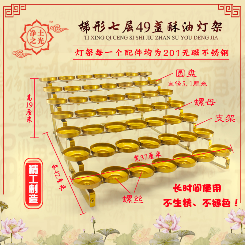 Stainless steel seven-layer trapezoid 49 butter lamp shelf lamp holder candle holder lotus home pharmacist by Changming Buddha for lamp