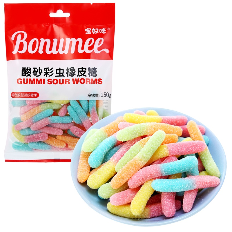 Sour sand color bug gummy sour sand strawberry gummy sour sand cola gummy bear gummy bear caterpillar gummy candy fish-shaped gummy red blackberry gummy fruit ring gummy boxed gummy bear 1 box