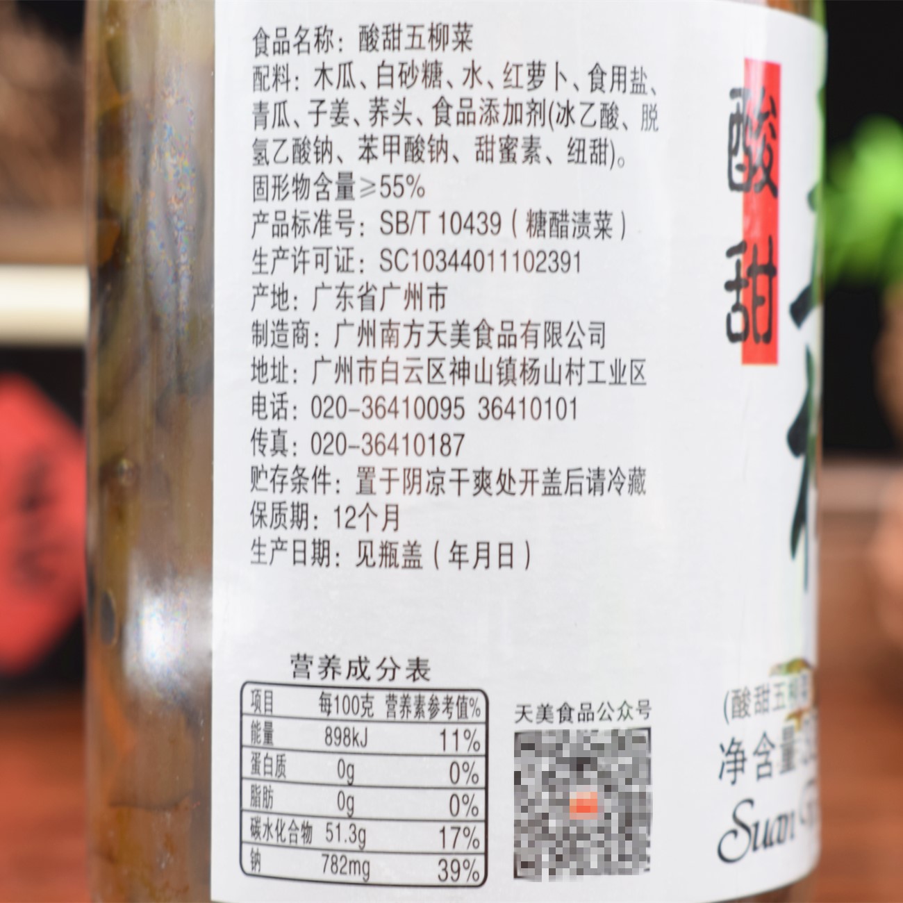 Lingnan specialty Guangzhou Nanfang Tianmei sweet and sour five willow vegetables 320g*4 bottles of fried egg pickles appetizers sweet and sour