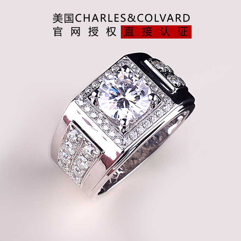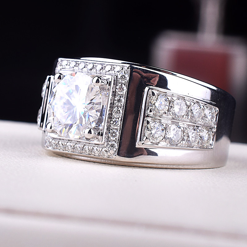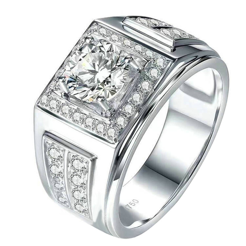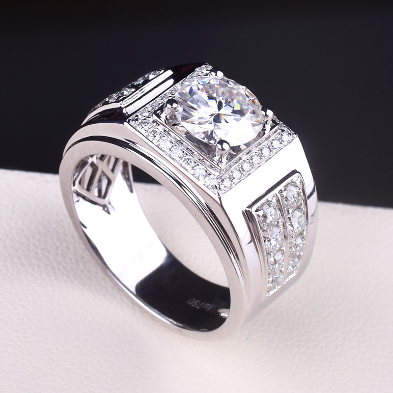 US imports mosanstone ring 18K gold platinum 3 carats to ring atmosphere extravagant, European and American overbearing personality male ring