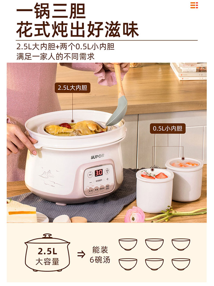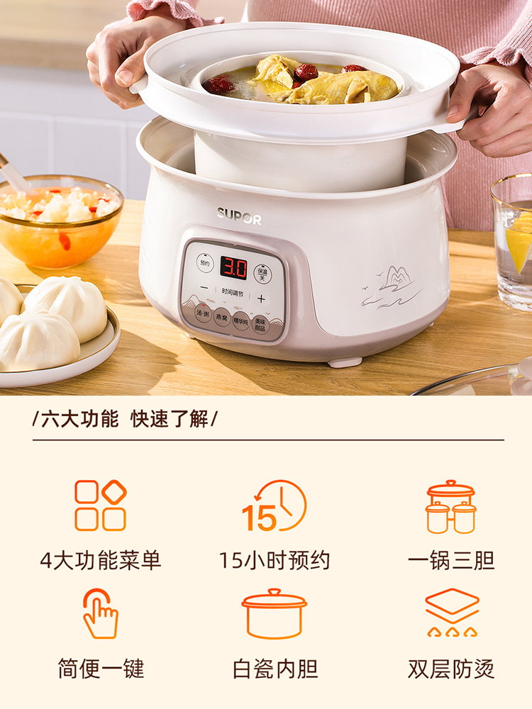 Supor electric stew pot Electric stew pot Household health ceramic electric stew pot Bird's nest soup and porridge artifact automatic
