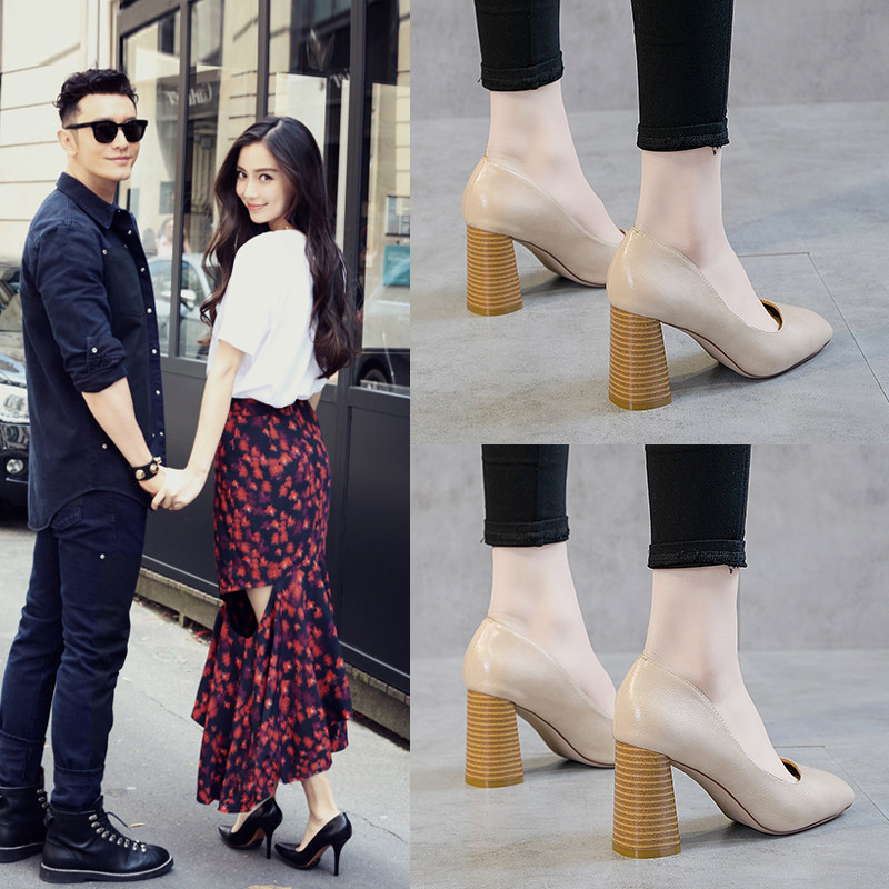 High-heeled shoes women's 2021 new spring and autumn 2022 spring fashion shallow shoes with thick heels and red red in the evening.