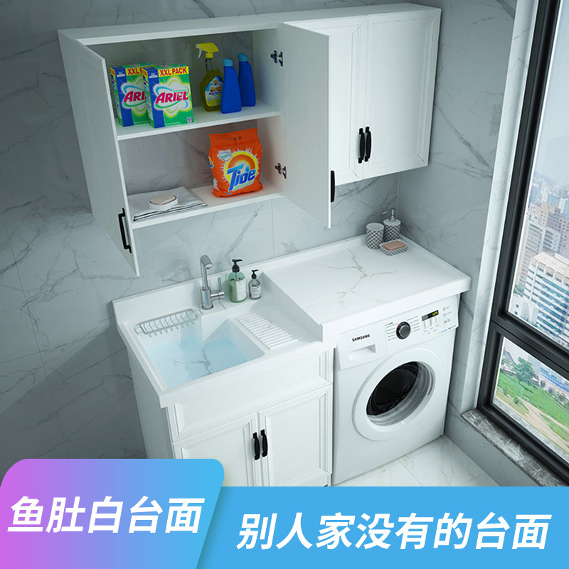 Small apartment space aluminum balcony Washing machine cabinet with washboard sink Hand washing bathroom cabinet Combination all-in-one cabinet companion