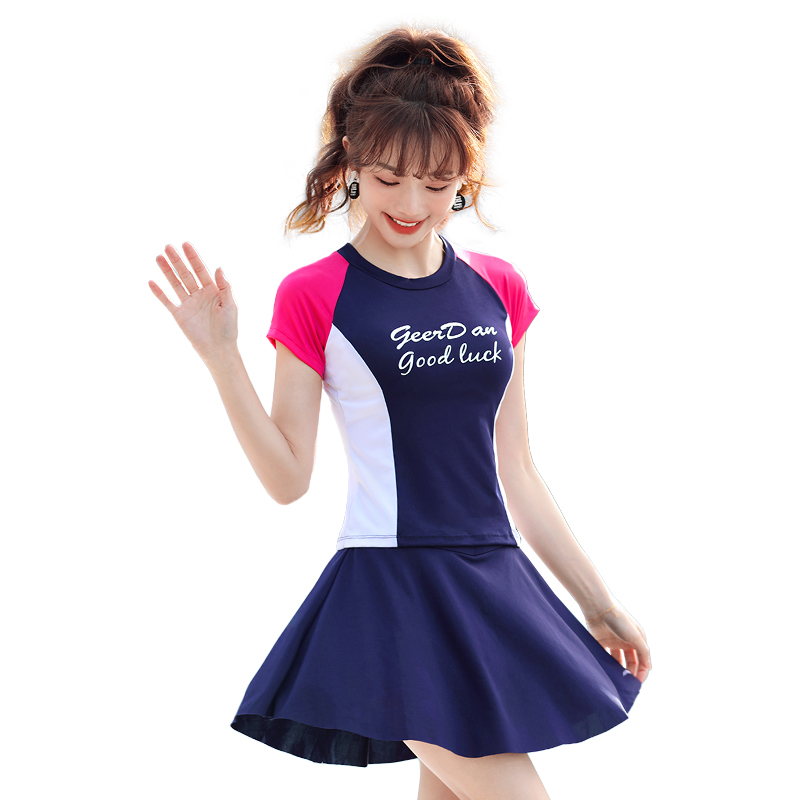 Swimsuit women conservative two-piece boxer swimsuit 2022 new slimming cover belly short-sleeved sports large size hot spring swimsuit