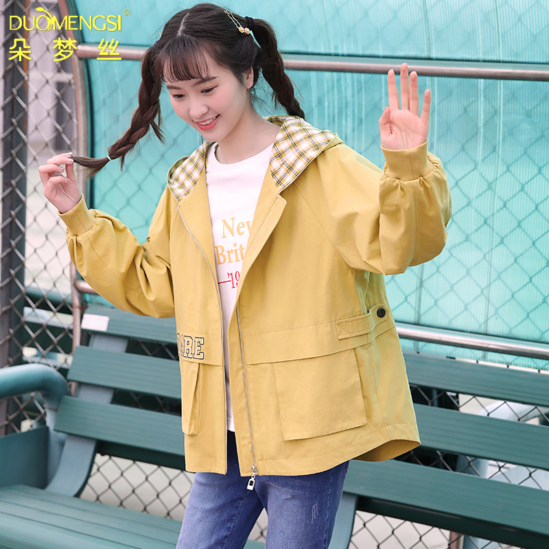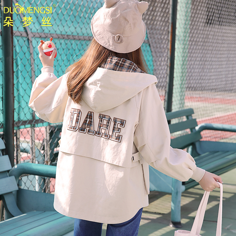 Girls' autumn clothes junior high school students spring and autumn coat female Korean version loose high school student windbreaker female 14-16 years old college style