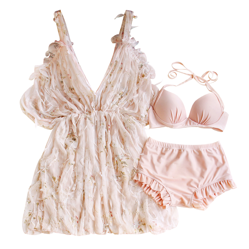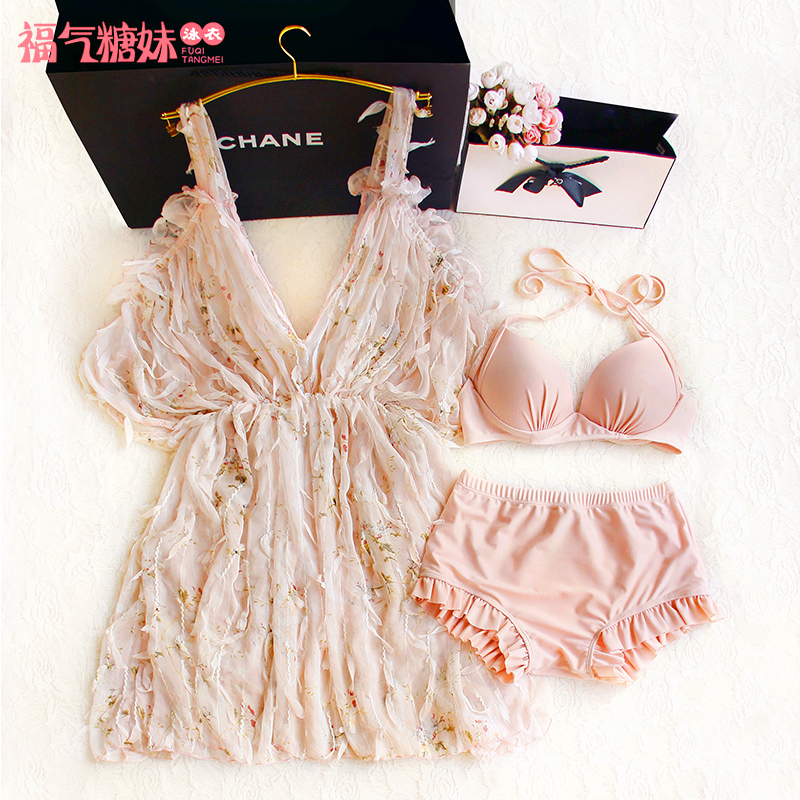Super fairy fan swimsuit women's three-piece 2021 new summer thin bikini sexy hot spring swimsuit blouse skirt
