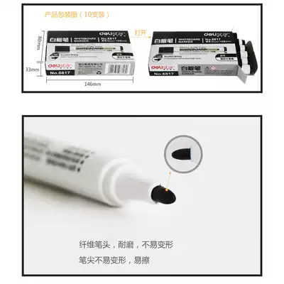 Deli stationery 6817 whiteboard pen Black water-based erasable red and blue non-ink whiteboard pen 10 Office supplies
