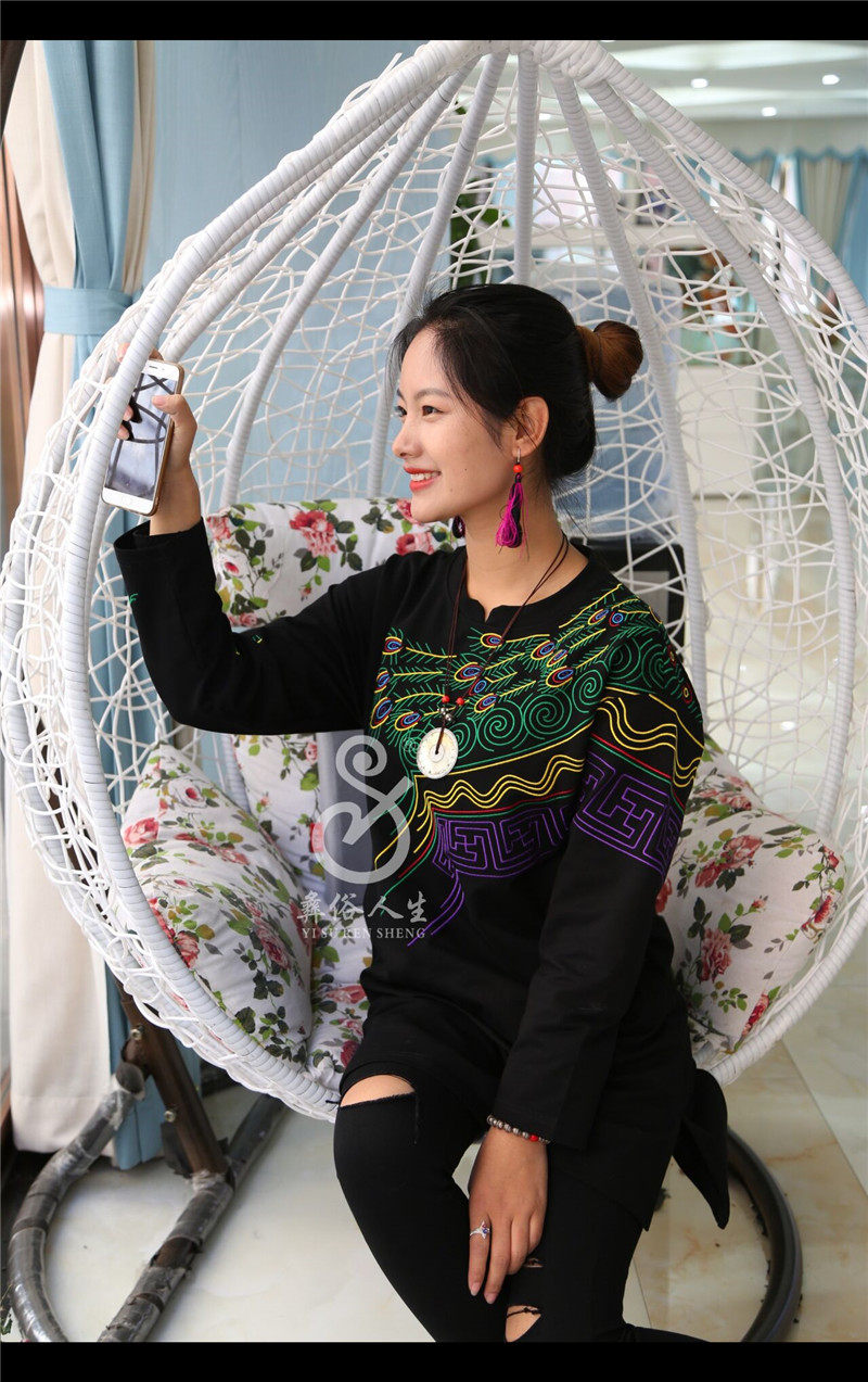 Cool Mountain Yi clothing Yi Costume Yi People Raw Spring Clothing New Peacock Embroidery Flowers Medium Long Version Blouses of the Courtesy of the Courtesy of the Courtesy
