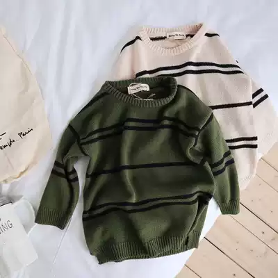 Korean baby striped sweater 2021 autumn new men's and women's children's baby tops long-sleeved sanitary clothes knitwear