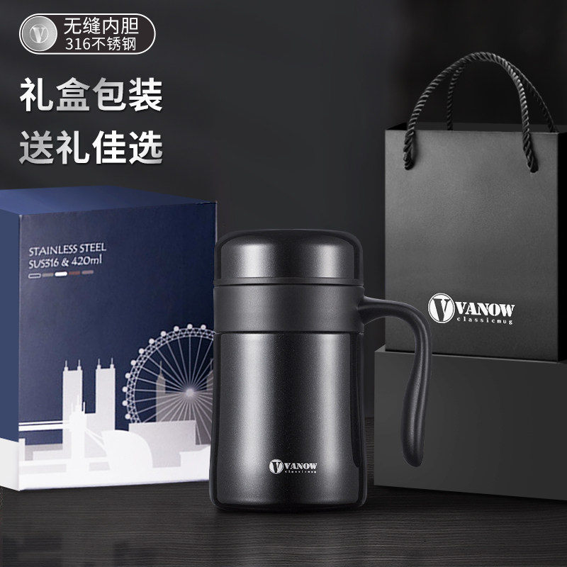 High - end insulation cup men 316 stainless steel large capacity office with handle cup with handle cup with hand cup