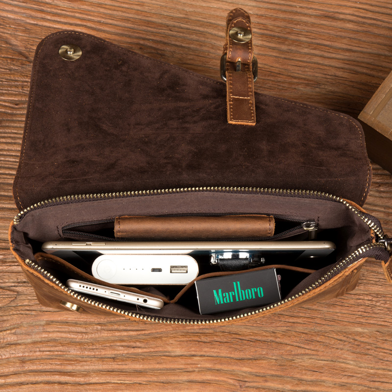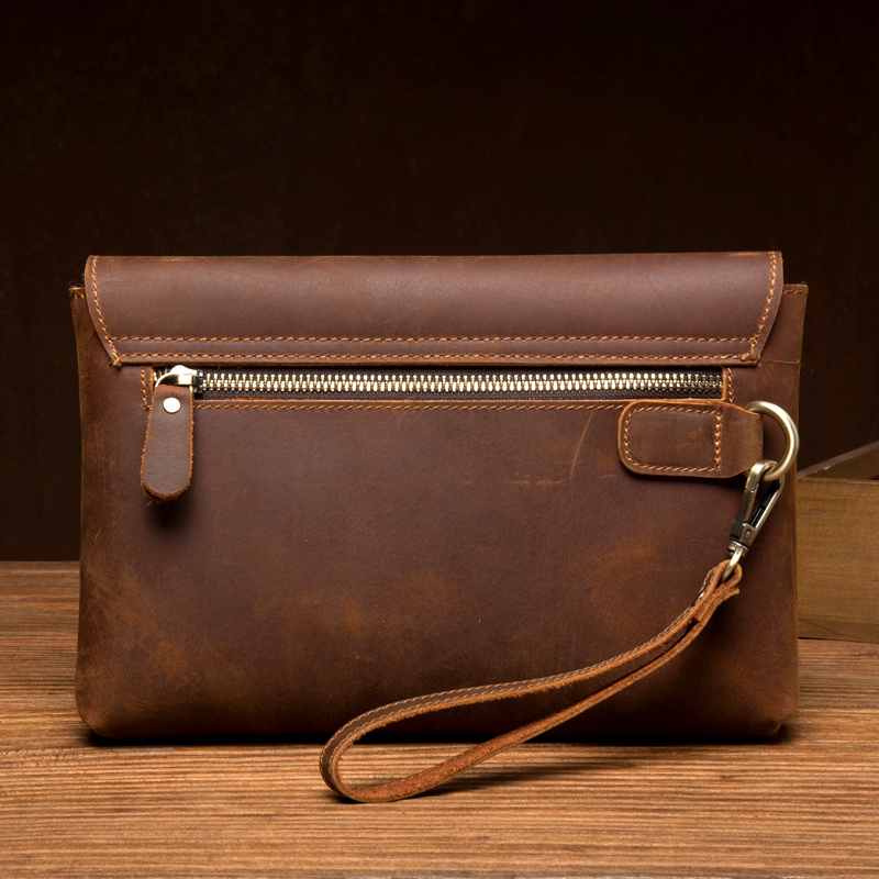 Slow Time Retro Handmade Crazy Mapleather Handbag for men's genuine leather Long version Money clip Purse Bull Leather Handbag
