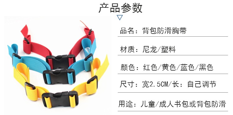 Children's school bag anti-slip with chest front cingulum backpack with buckle fixed buckle student double shoulder bag anti-fall shoulder strap insert buckle