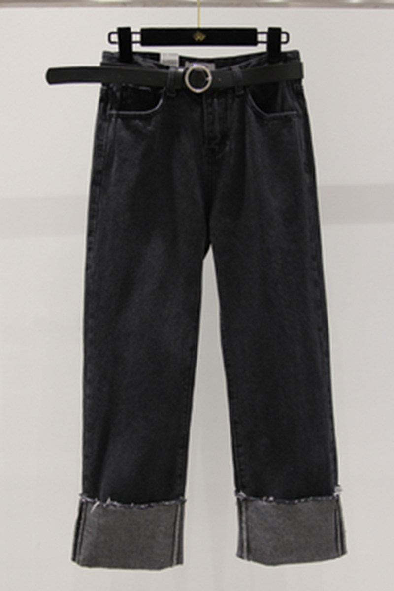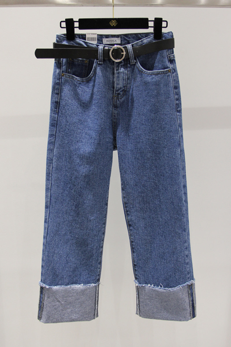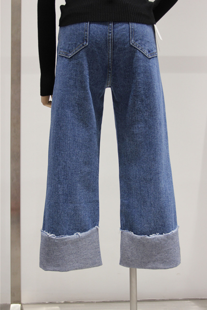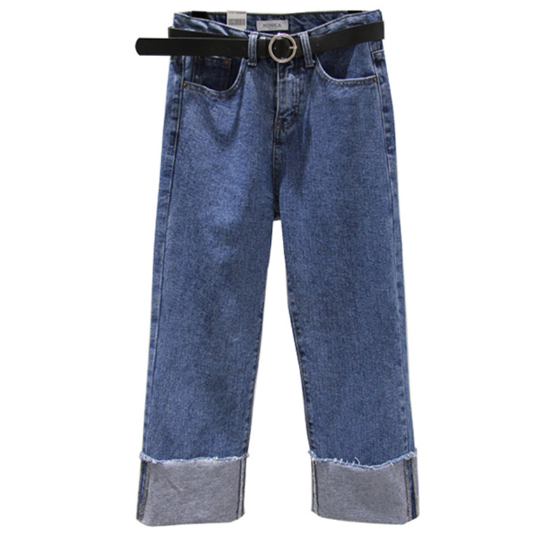 Drop sense wide leg pants Fat mm large size jeans women's 200 pounds high waist loose Korean nine-point pants Fat sister pants
