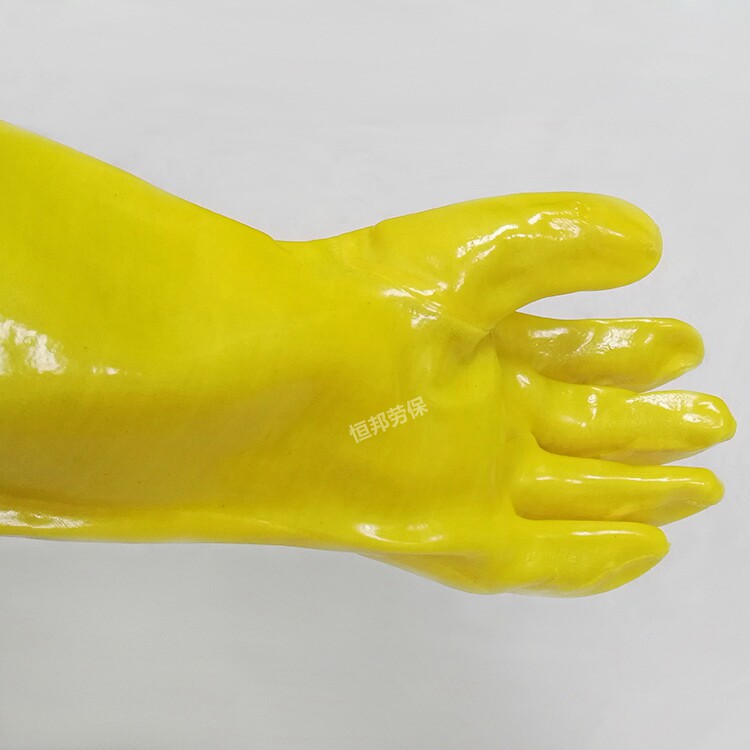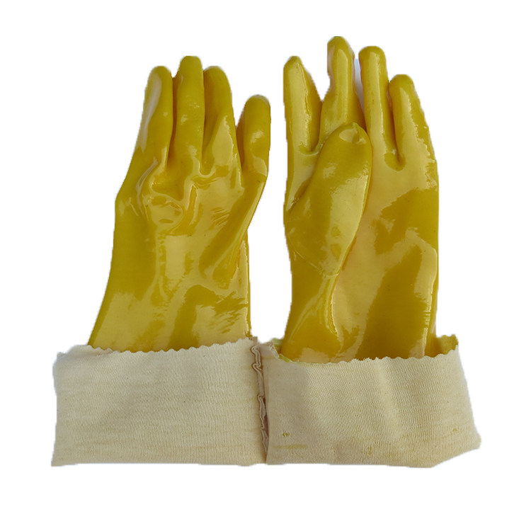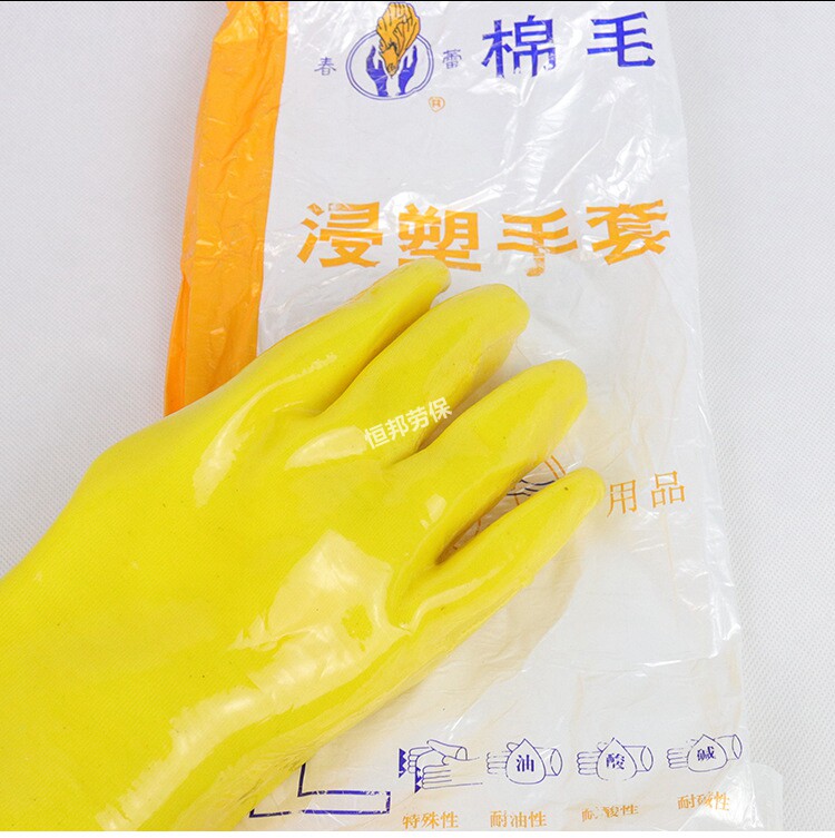 Spring bud wear-resistant cotton wool dipped plastic gloves extended section industrial oil-resistant anti-slip acid-base gloves rubber labor protection waterproof