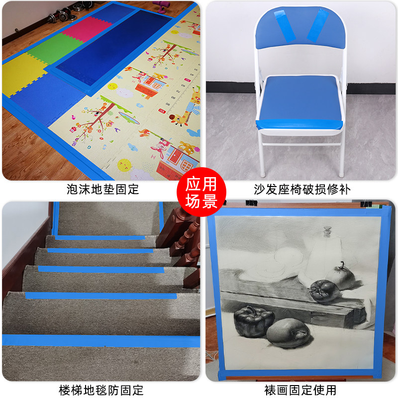 Blue adhesive tape Bunky adhesive tape single-sided color powerful high adhesive floor wide adhesive tape waterproof No marks Vigorous Rubberized Fabric Wedding Carpet Rubberized Fabric Diy Decoration Sky Blue Waterproof Remiss Floor Special