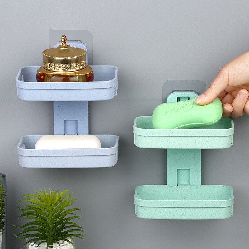 Creative double-layer soap box sucker wall mounted soap rack Bathroom household asphalt soap box