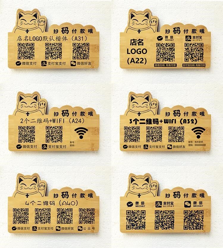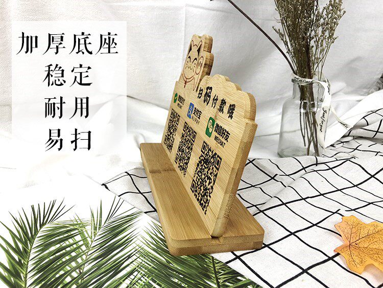 Creative solid wood carving Wooden two-dimensional code to receive money to pay to pay to lay a card cash register wooden wooden card