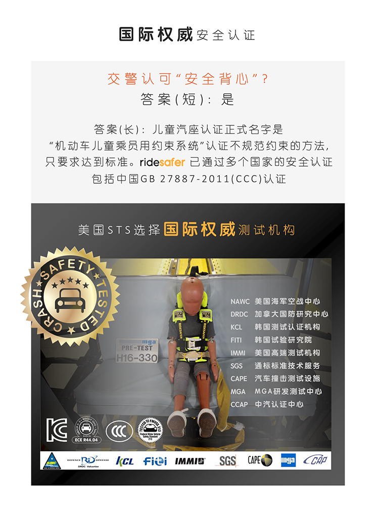 ridesafer American wearable portable baby seat vest holding baby bag safety rope