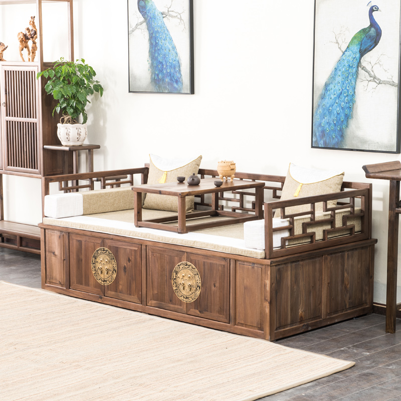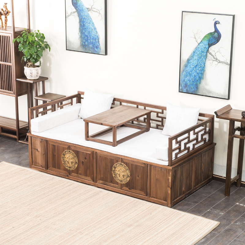 Yijia tribe New Chinese walnut Arhat bed sofa bed solid wood couch bed couch bed antique living room furniture