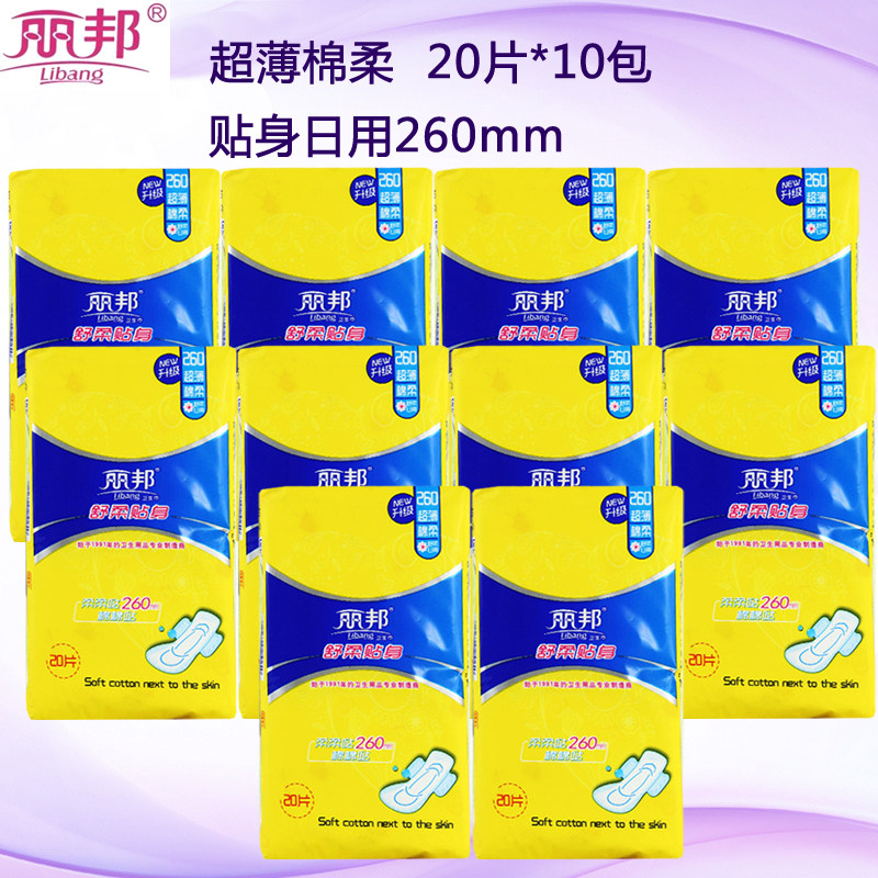 Libang silk cotton sanitary towel with 260mm cotton soft breathable and aunt towel 20 tablets*10 packs