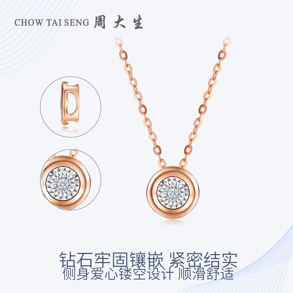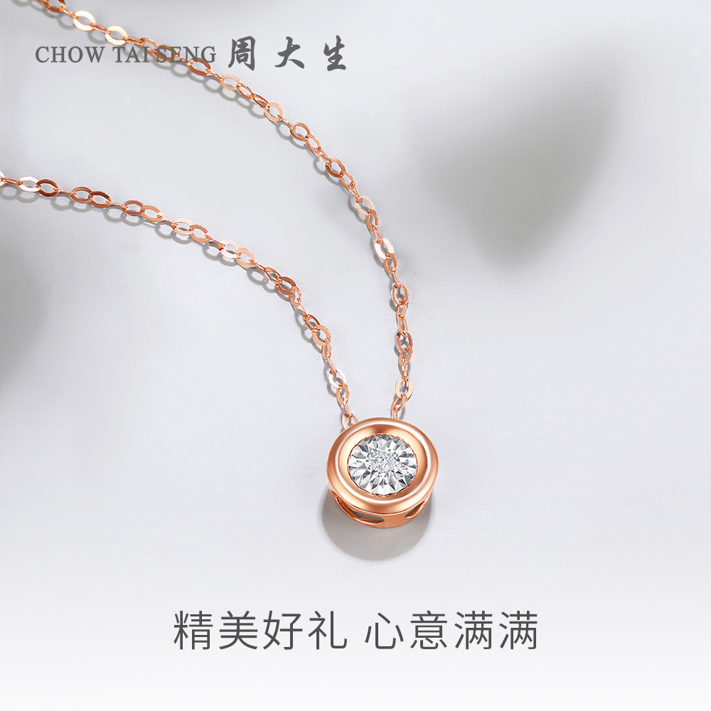 Zhou Daisheng 18K Gold Diamond Necklace Girl Round Bubble Rose Gold Collarbone Bracelet Pendant Sending Girlfriend Gift