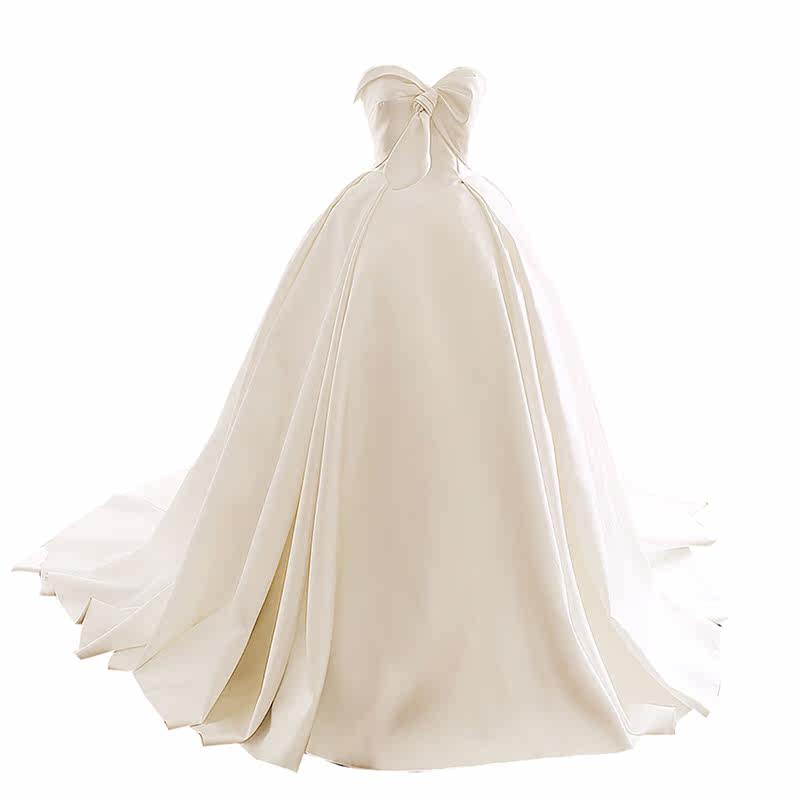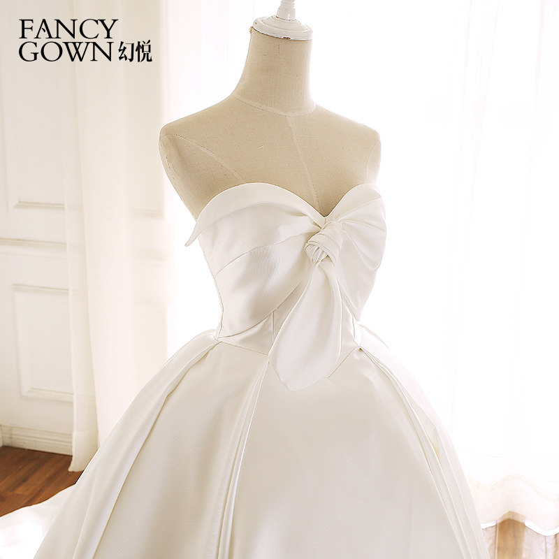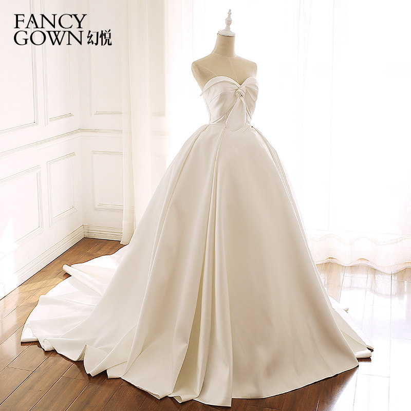 Broken yard duke satin long trailing smear style satin minimalist butterfly knot retro palace pontifine pony dresses big trailing wedding dresses