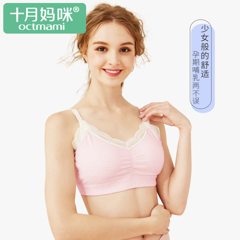 October Mommy Pregnant Woman Underwear Without Steel Ring Breastfeeding Front Open Button Lactation Comfort Bra Hood Anti Saggy Drinking Milk Hood