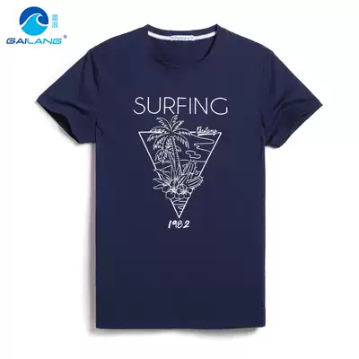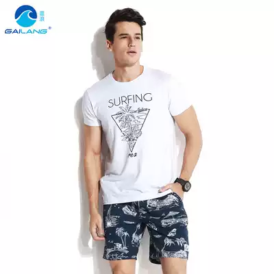 Gai Lang seaside holiday short sleeve T-shirt men's cotton summer coat slim round neck solid color white print men's base shirt tide