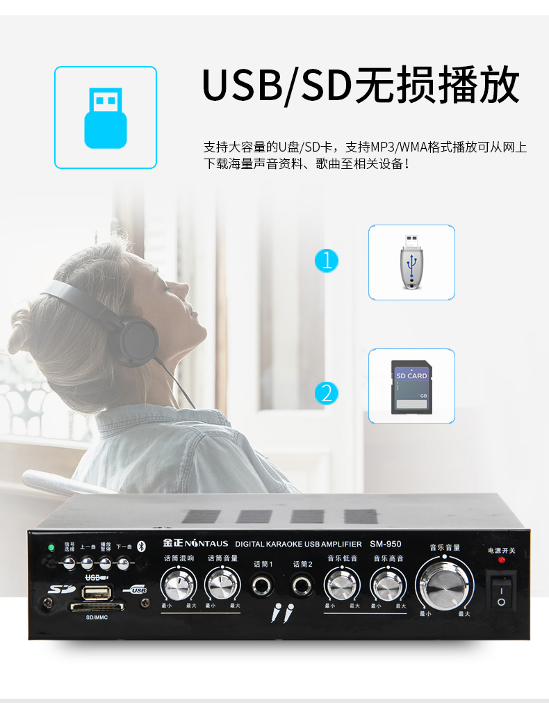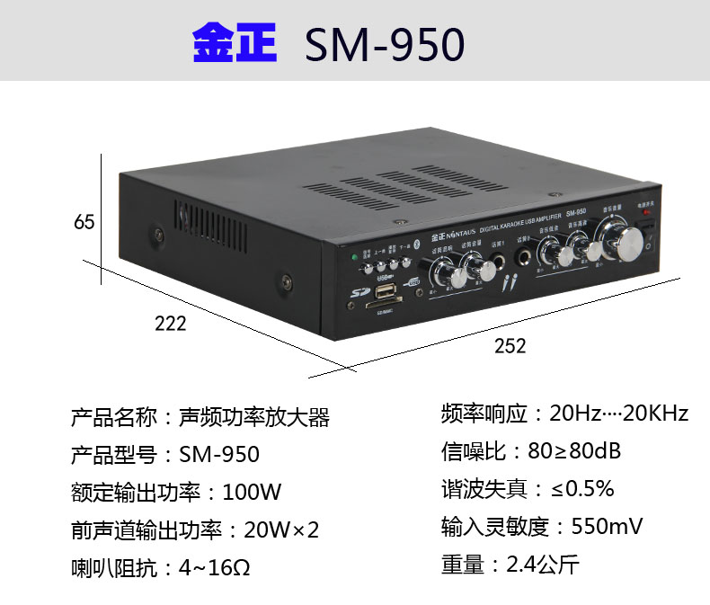Jinzheng household KTV amplifier Bluetooth U disk card playback high-power fever 2 0 constant resistance power amplifier