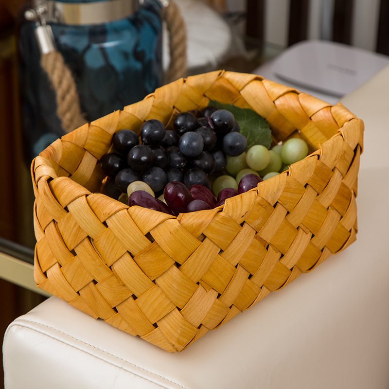 Handmade Wooden Sheet Storage Basket Bread Basket Fruit Vegetable Basket Creative Vine Storage Basket Breakfast Storage