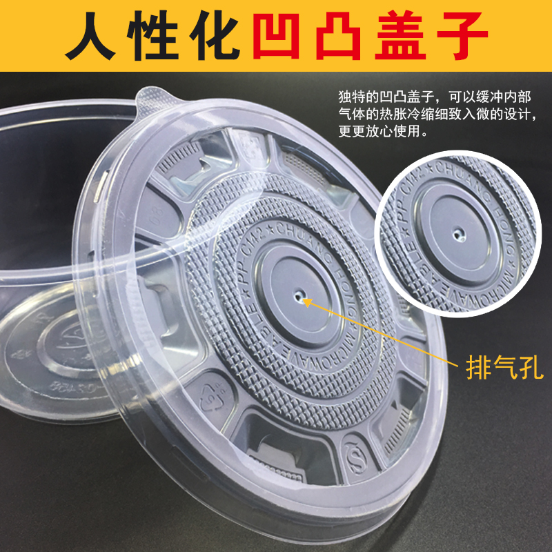 Disposable packed bowl with cover 700 round car noodle udon noodle bowl takeaway lunch box transparent milky white black