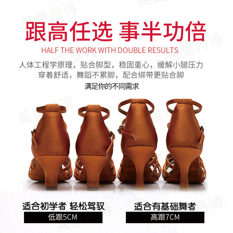 English Real Sgia Professional Latin Dance Shoes Female Adult Soft Bottom National Peurenba Medium-high Heel square Dance Shoe