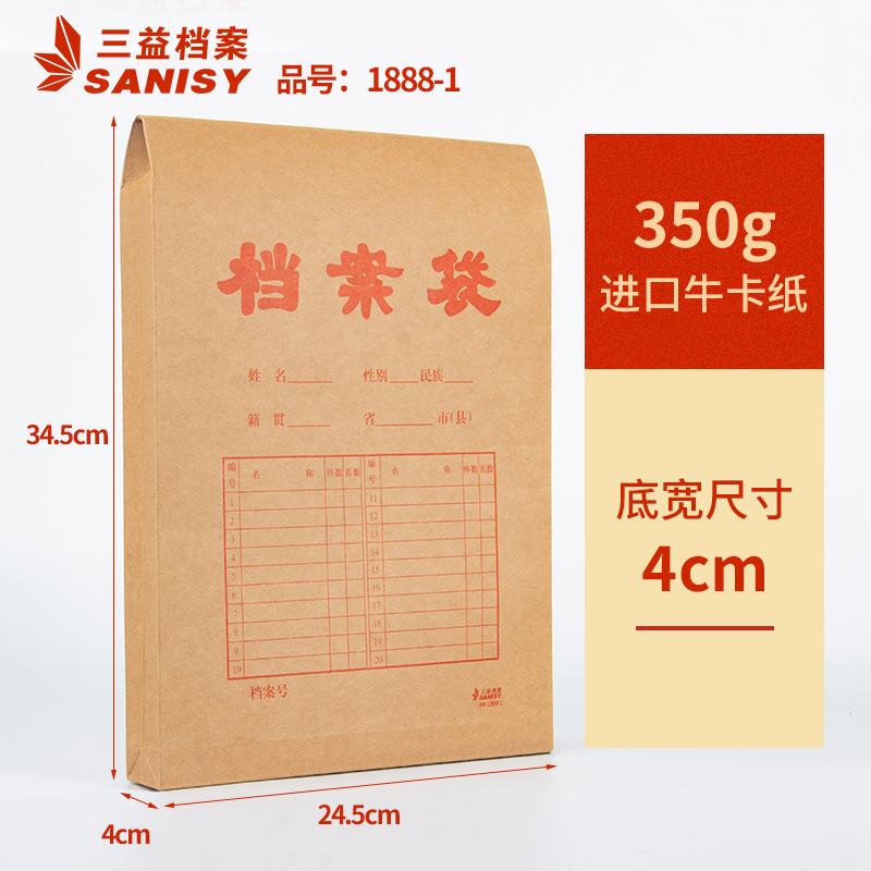 (side width 4cm, 10 pieces) 350g imported kraft cardboard file bag 1888-1 (side width 12cm, 10 pieces) 360g imported kraft cardboard file bag 1888-