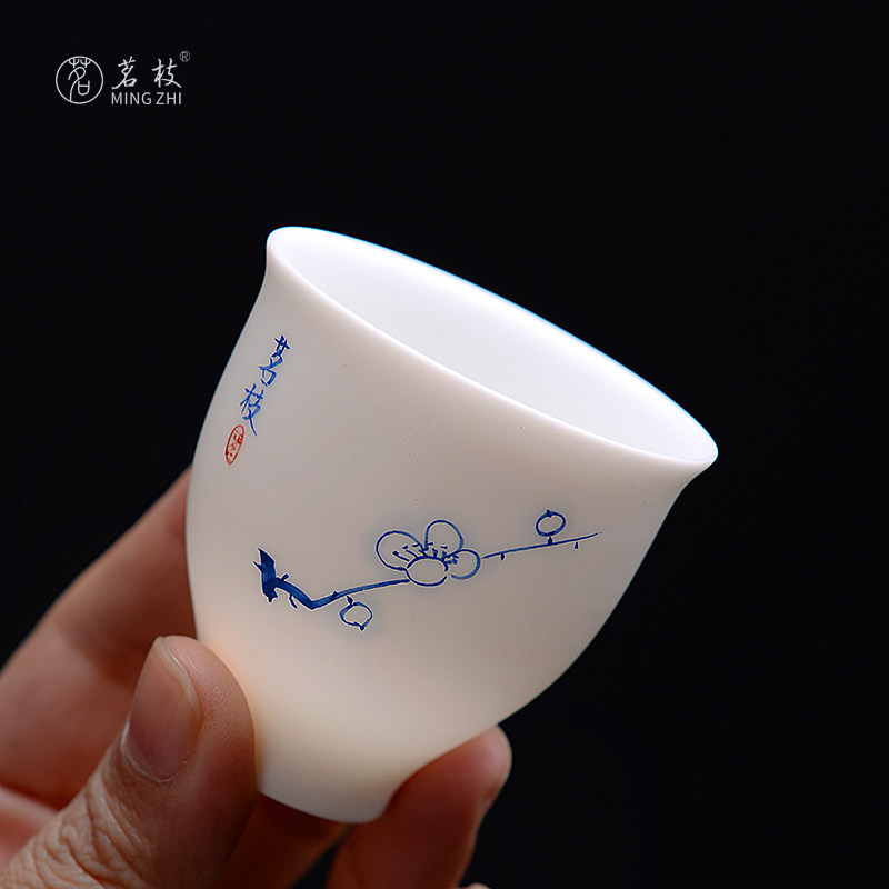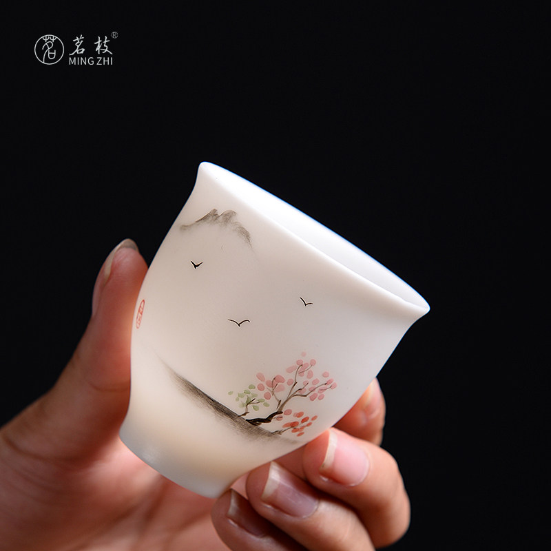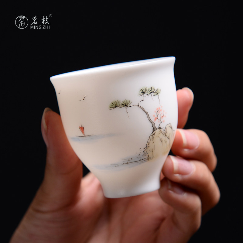 Mingzhi ceramic kung fu tea cup hand-painted master cup single cup white porcelain tea set household goods tea cup small teacup handmade
