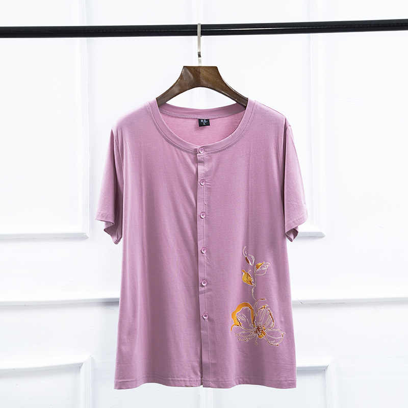 Summer female large size short sleeve open flap jacket Mom vest woman middle-aged and old age plus fat increase open up short sleeve cotton sweatshirt new