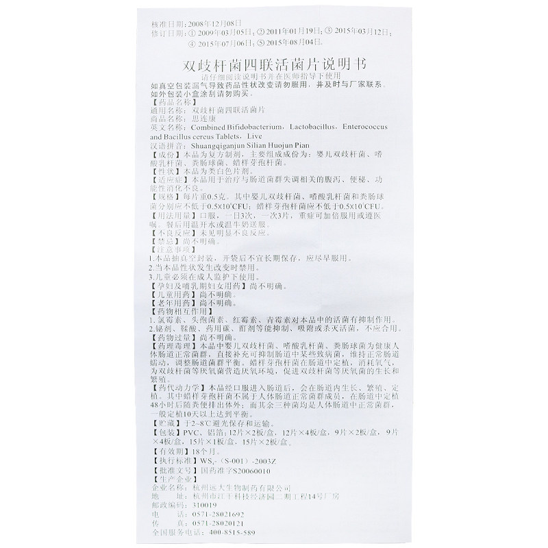 Four-linked live bacteria tablet of Sirenkang Bifidobacterium