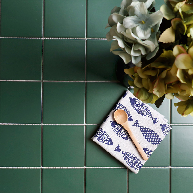 ins wind green mosaic Powder room kitchen bathroom balcony Nine grid wall tiles Dark green net red shop tiles