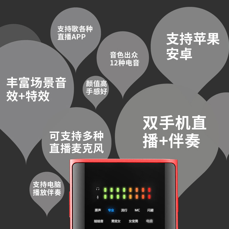 Podcast the second-generation electric sound version Black Podcast, the second-generation electric sound version of the red main pen grade suit E300 Handheld the Mak Podcast, the second-generation electroacoustic version of the sound card Podcast, the second generation electric sound version with small milk bottle microphone Mori