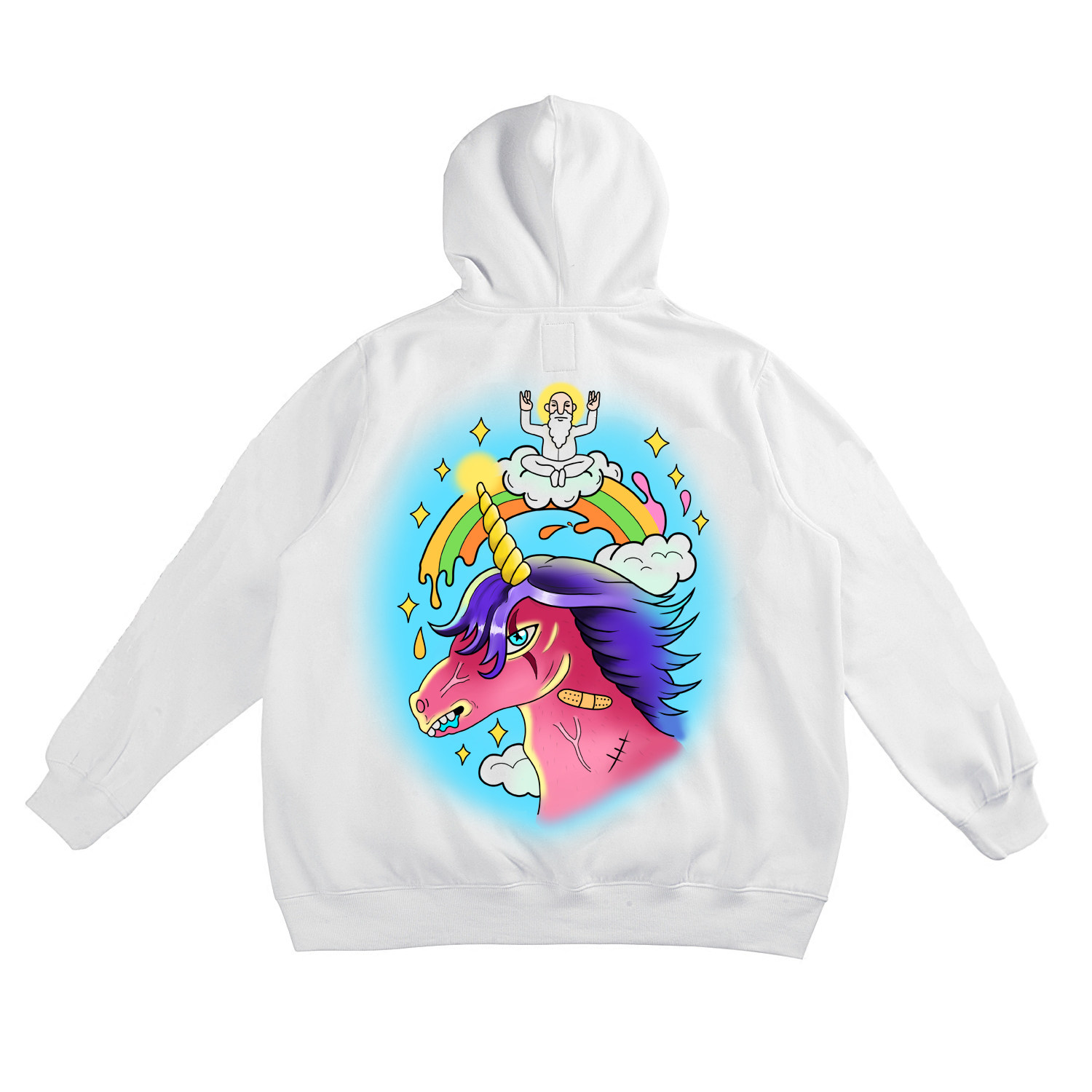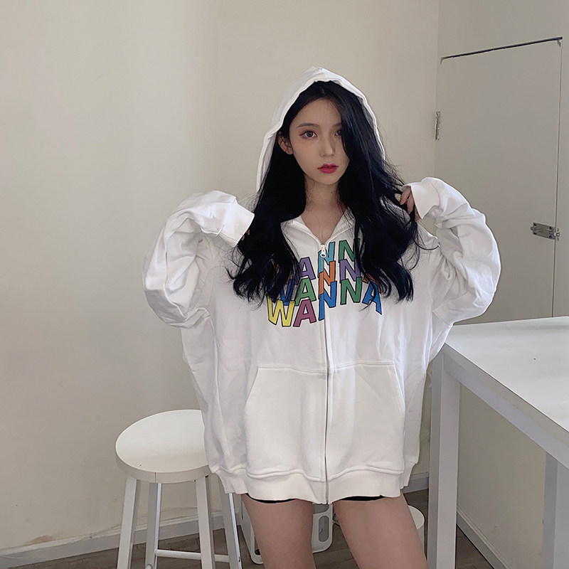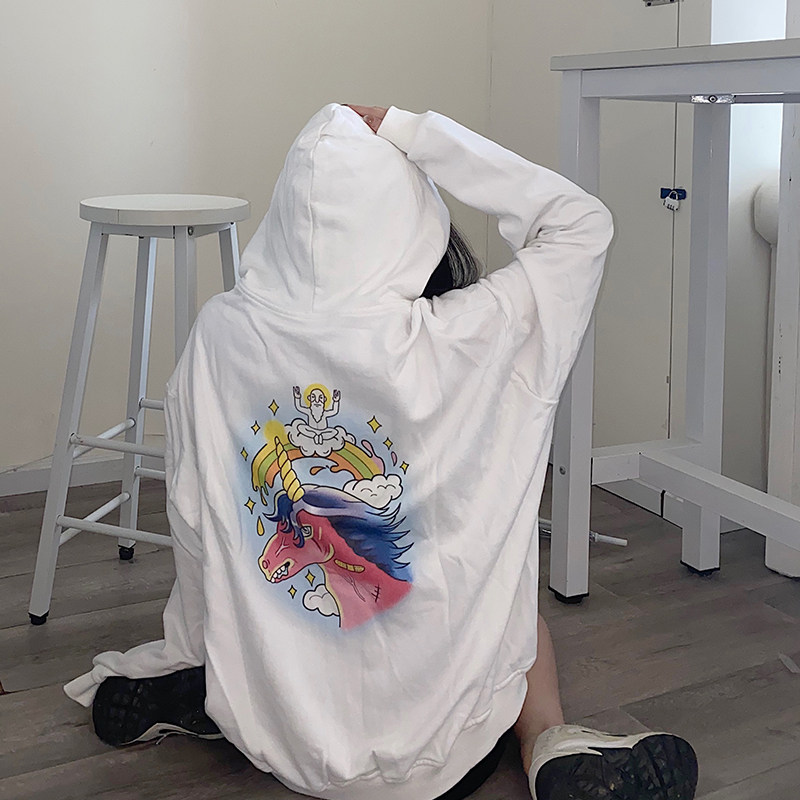 WANNA LAB 18FW Rainbow unicorn cardigan hooded jacket male and female models couple loose letters