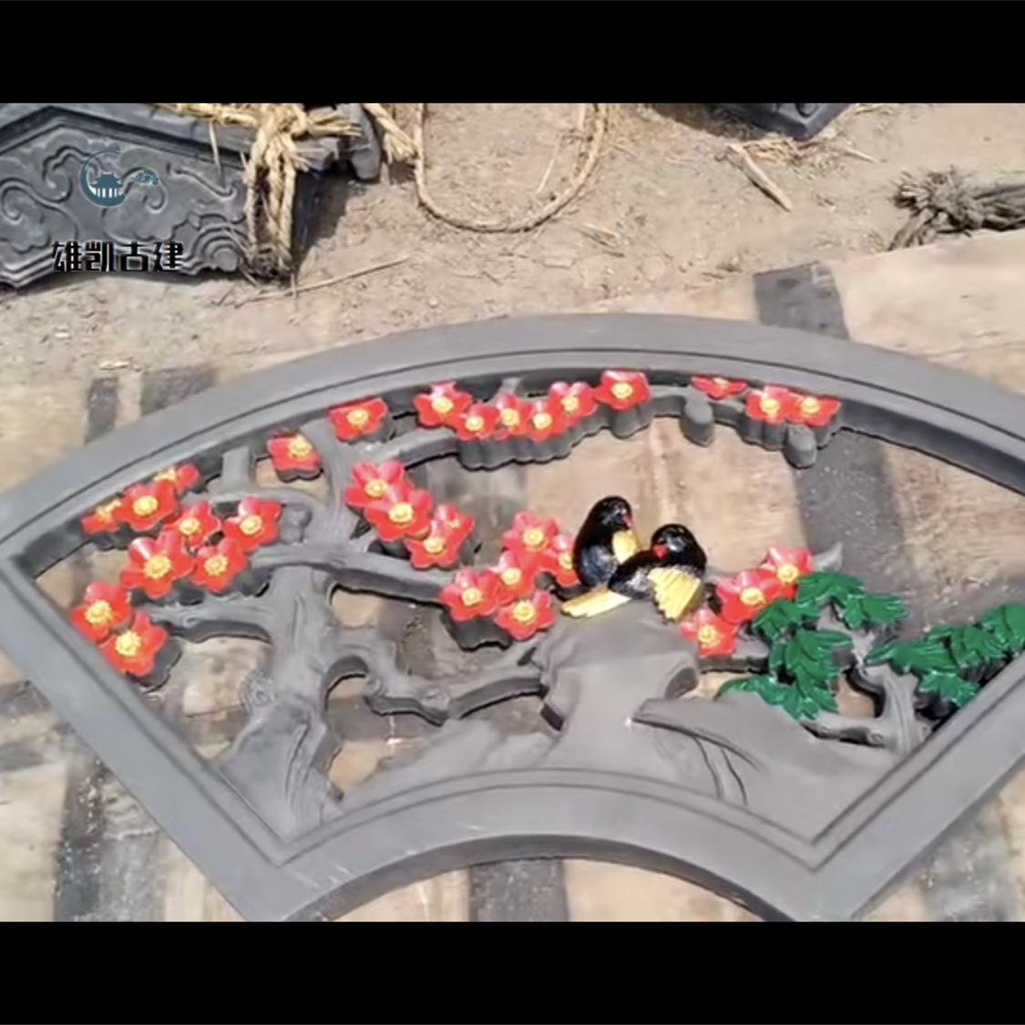 Brick carving Antique brick carving Chinese fan-shaped plum orchid bamboo chrysanthemum wall decoration Shadow wall wall relief hanging ornaments Ancient brick carving
