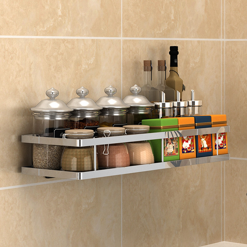 Kitchen shelf 304 stainless steel wall-mounted seasoning condiment storage shelf Punch-free wall shelf