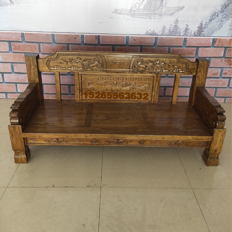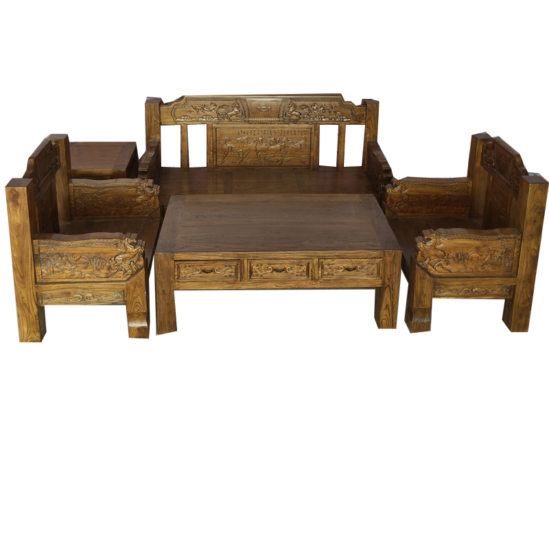 New all solid wood sofa Chinese old elm furniture 113 sofa combination household solid economical wood sofa