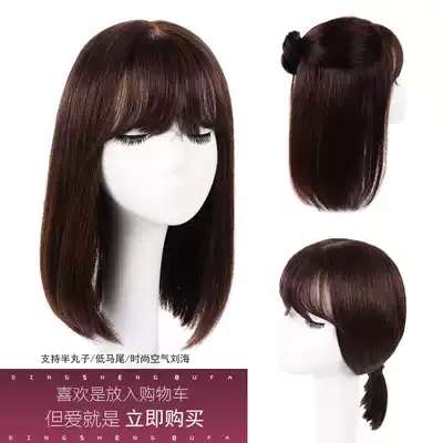 Wig women's medium and long hair natural full headgear New hand-woven net red air Liuhai real person hair needle short hair set