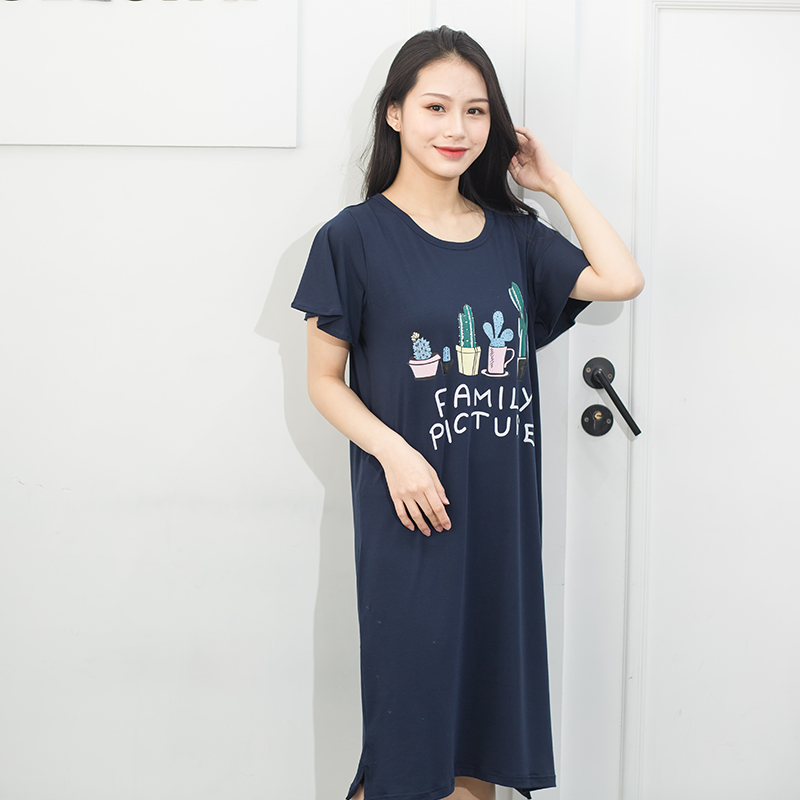 Short Sleeve Sleeping Skirt Woman summer Modale lengthened home with large size pyjamas thin and loose half-sleeve dress with a knee