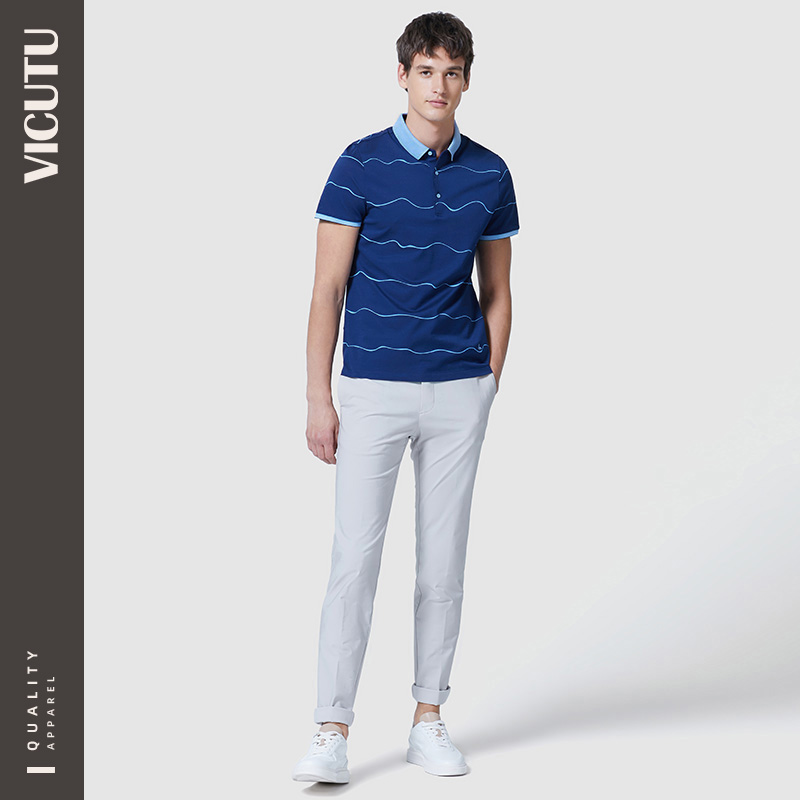 VICUTU Vikado men's short sleeve T-shirt summer new cotton silk trend lapel polo shirt Tide brand Hui