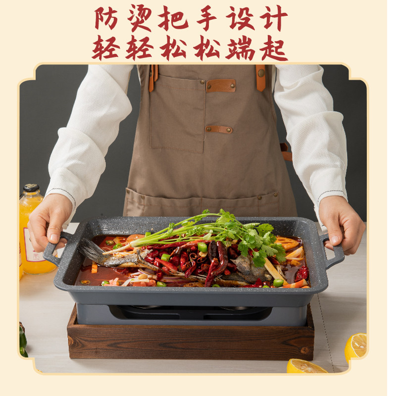 Aluminum Zhuge grilled fish stove wooden seat commercial rectangular charcoal alcohol stove medical stone non-stick grilled fish plate lamb chops plate